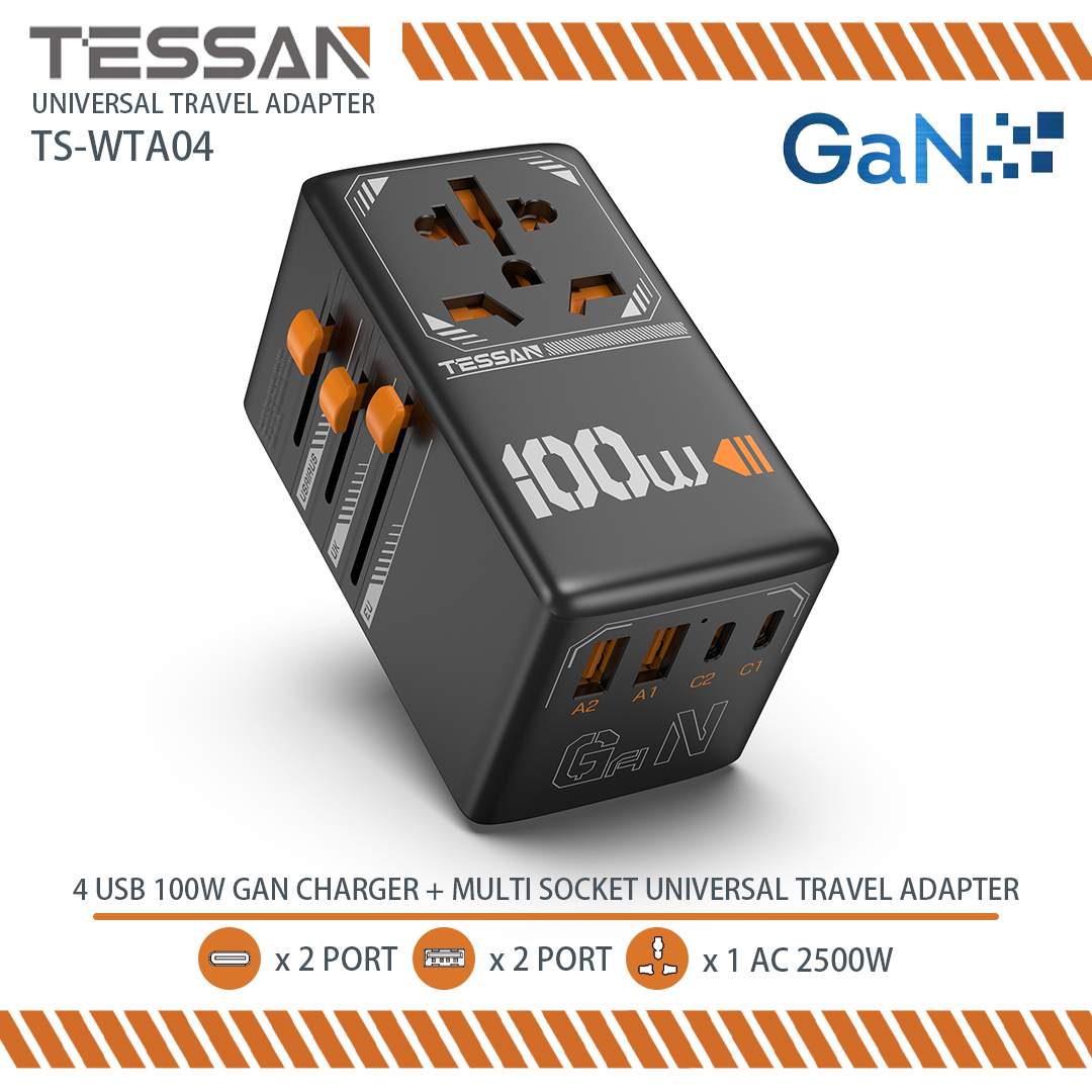 TESSAN 4-port GAN 100W通用旅行適配器 100W universal travel adapter TS-WTA04