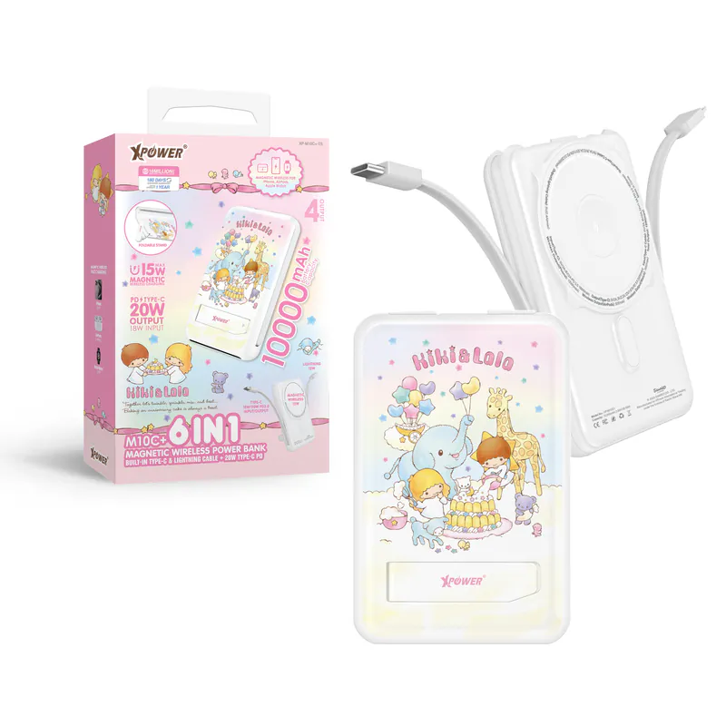 (1C1L版)XPower x Sanrio Little Twin Stars M10C+ 6合1 10000mAh多功能迷你20W PD3.0+ 磁吸無線快充移動電源