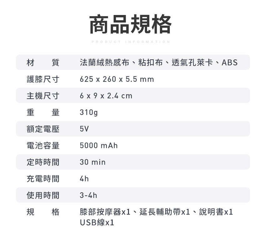 膝蓋痛? 3zebra推出溫感膝部按摩器,大面積熱敷,一機多用,無論膝蓋、肩膀定手肘位置一樣可能使用,有內袋位置還可以放藥包熱敷,360度包圍,而且還有三個震動模式! 產品特點: 3段震動 一機多用 大面積發熱 5段溫控 360度包圍 5000mAh長續航力 * 該產品不包括艾草包。