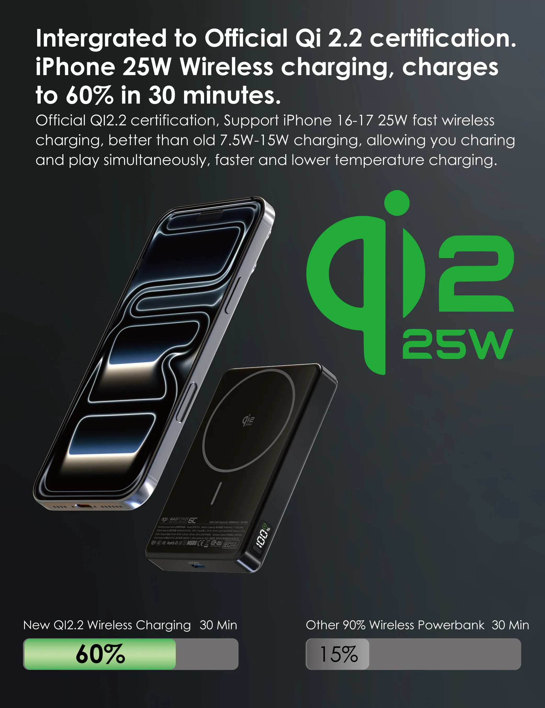 1. QI2.2 認證,支援25W超快無線充, 30分鐘充60%電