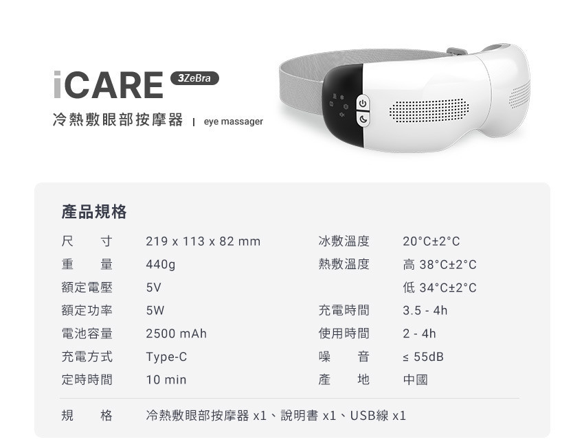 3ZeBra iCARE 冷熱敷眼部按摩器 G05-38|無線眼部按摩器|熱敷眼罩|冷敷眼罩