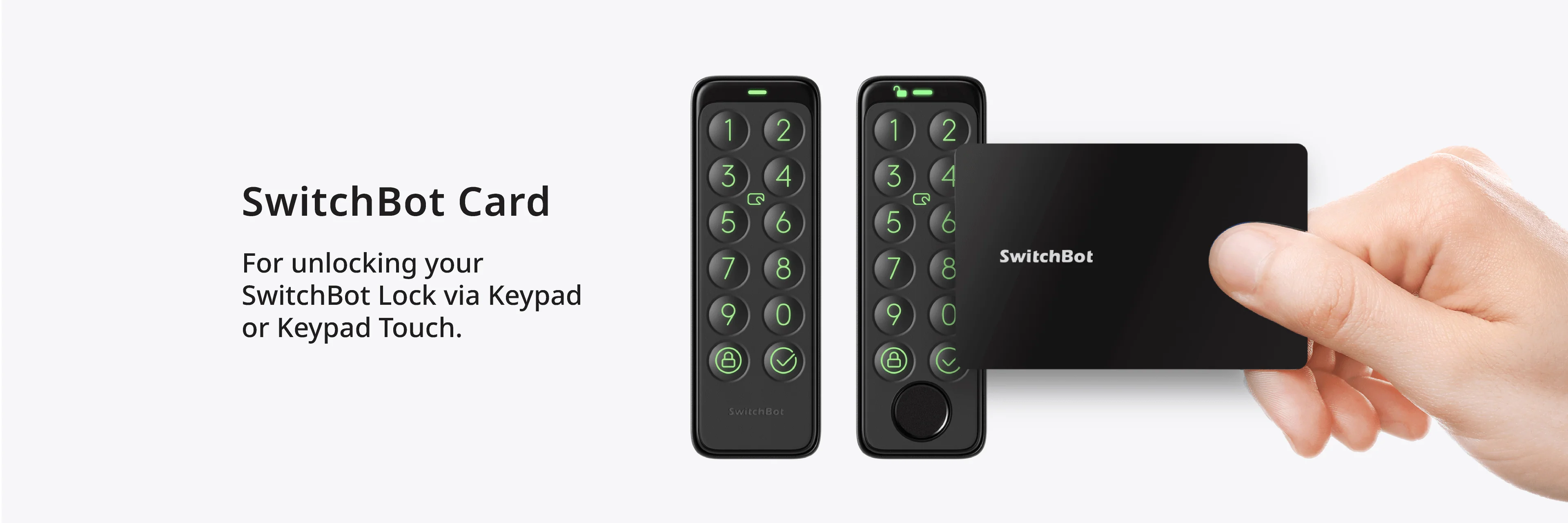 最多可使用 100 張不同的卡片解鎖 - 您還可以設定卡片的解鎖時間,並將其與 SwitchBot 鍵盤和 SwitchBot 觸控鍵盤搭配使用。