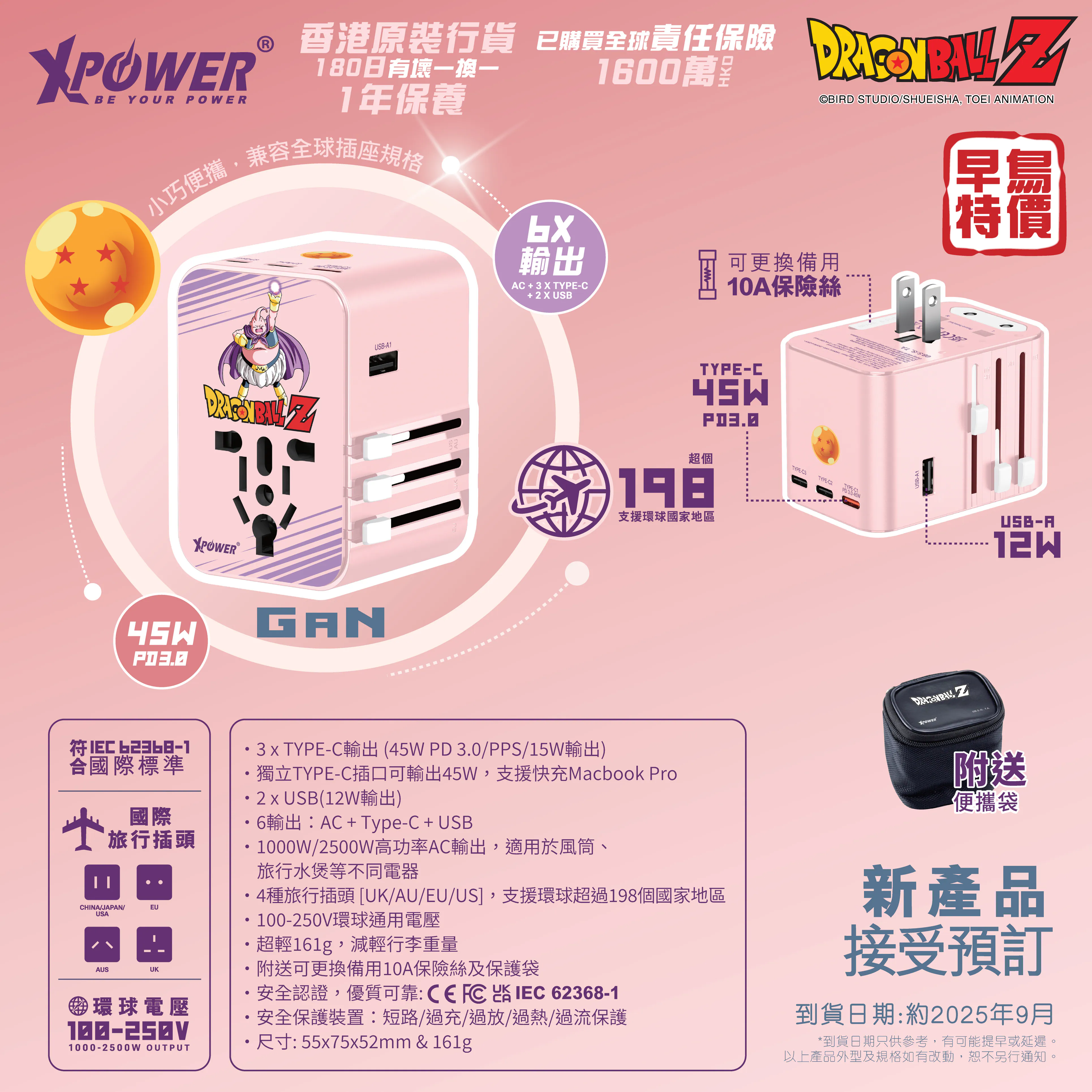 XPower x 龍珠Z TA45B 45W 6輸出 PD3.0/PPS快充旅行充電器 (布歐)