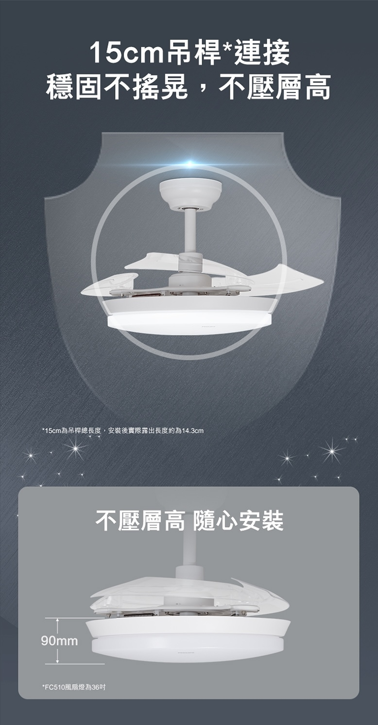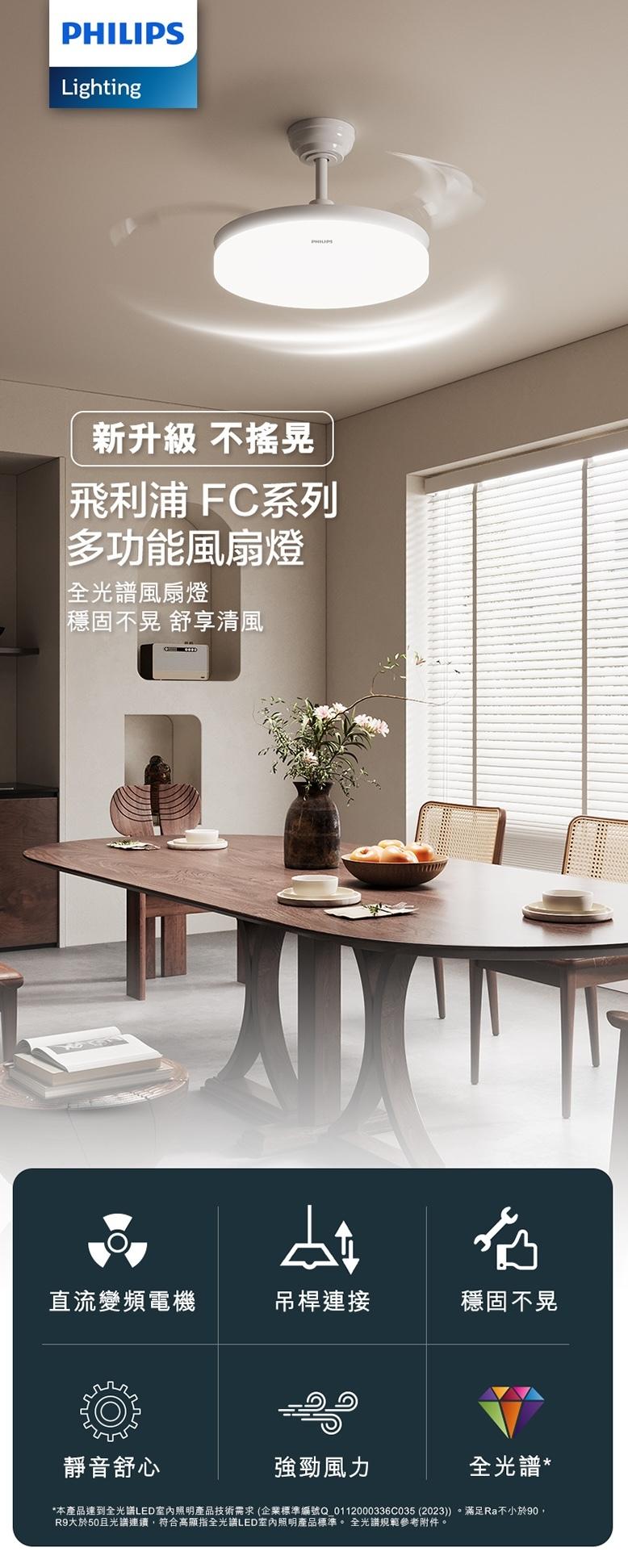 [飛利浦直送 原裝行貨2年保養] 飛利浦 Philips FC510 36吋 DC摩打風扇燈(白色)– 風扇18W + 全光譜LED燈24W 靜音節能 現代簡約風扇燈 Philips FC510 36" DC Motor Ceiling Fan with LED Light (White) – 18W Fan + 24W Full Spectrum Light