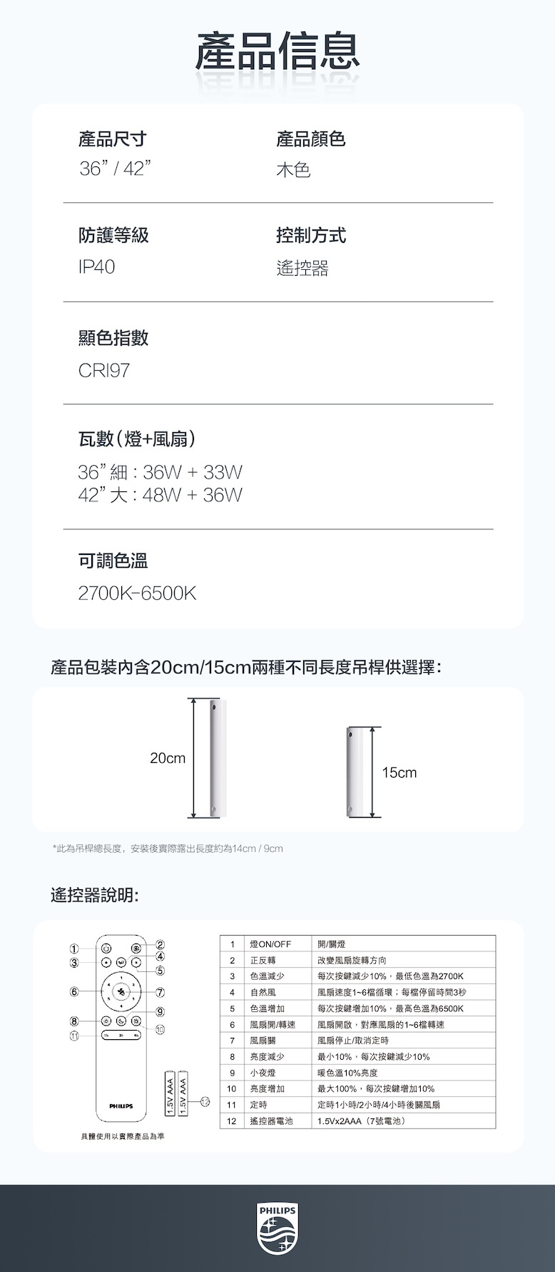[飛利浦直送 原裝行貨2年保養]  飛利浦 Philips FC580 42吋 DC摩打風扇燈(木紋色)– 風扇36W + 全光譜LED燈48W 靜音節能 大空間適用 Philips FC580 42" DC Motor Ceiling Fan with LED Light (Wood) – 36W Fan + 48W Full Spectrum Light 929004798009