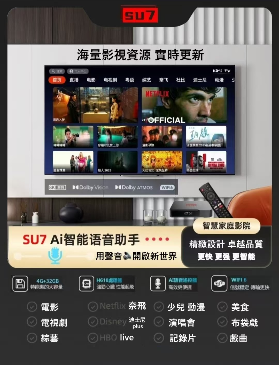 紫米科技 SU7 8K電視盒子 國際版│網絡盒子/機頂盒、語音遙控 ZMI SU7 8K TV Box International Version | Network Box/Set-Top Box, Voice Remote Control