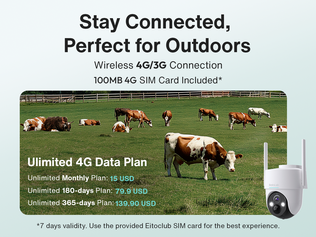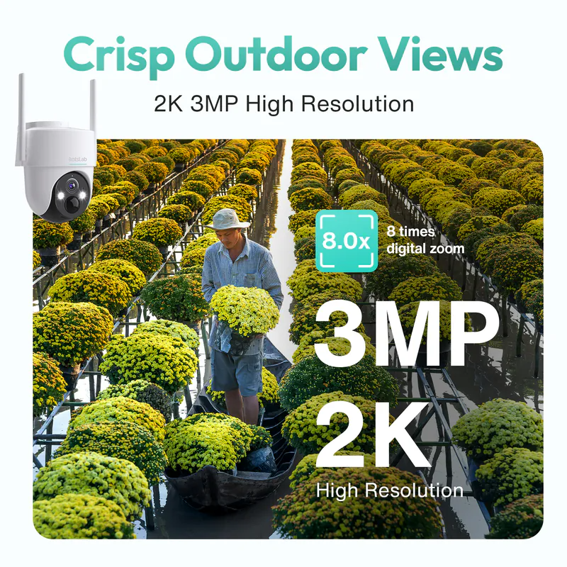 Botslab - 360 W314 太陽能供電戶外攝影機 (4G LTE Sim網絡)|AI識別、太陽能供電、雙向通話、超強夜視、IP65防水防塵、閃燈警報