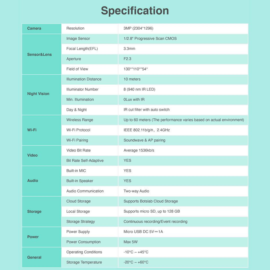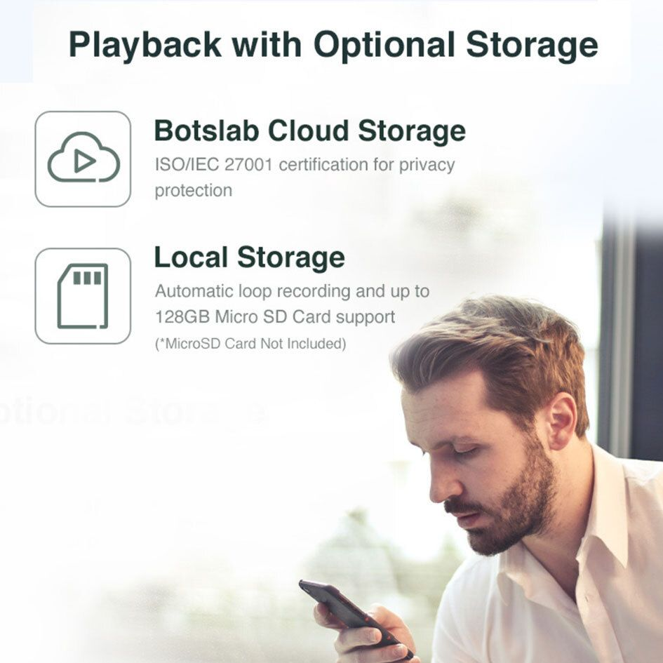 - 超高清2KHD(2304x1296)130超角視野 - 探用H.265嶄新編碼技,畫質更高清, 遠程觀看、拍照錄影、翻查重播 - 超强夜野、逆光矯正、低光全彩、移動偵測、哭聲偵測、智能人形識别 - 實時觀看,雙向通話,磁能安装方便快捷 - 支持多用戶操作,一部手機管理上限 - BOTSLAB Apps, 支持iOS/Android (遵循歐洲GDPR最高别私保款) - 通用於 Amazon Alexa, Google Assistant