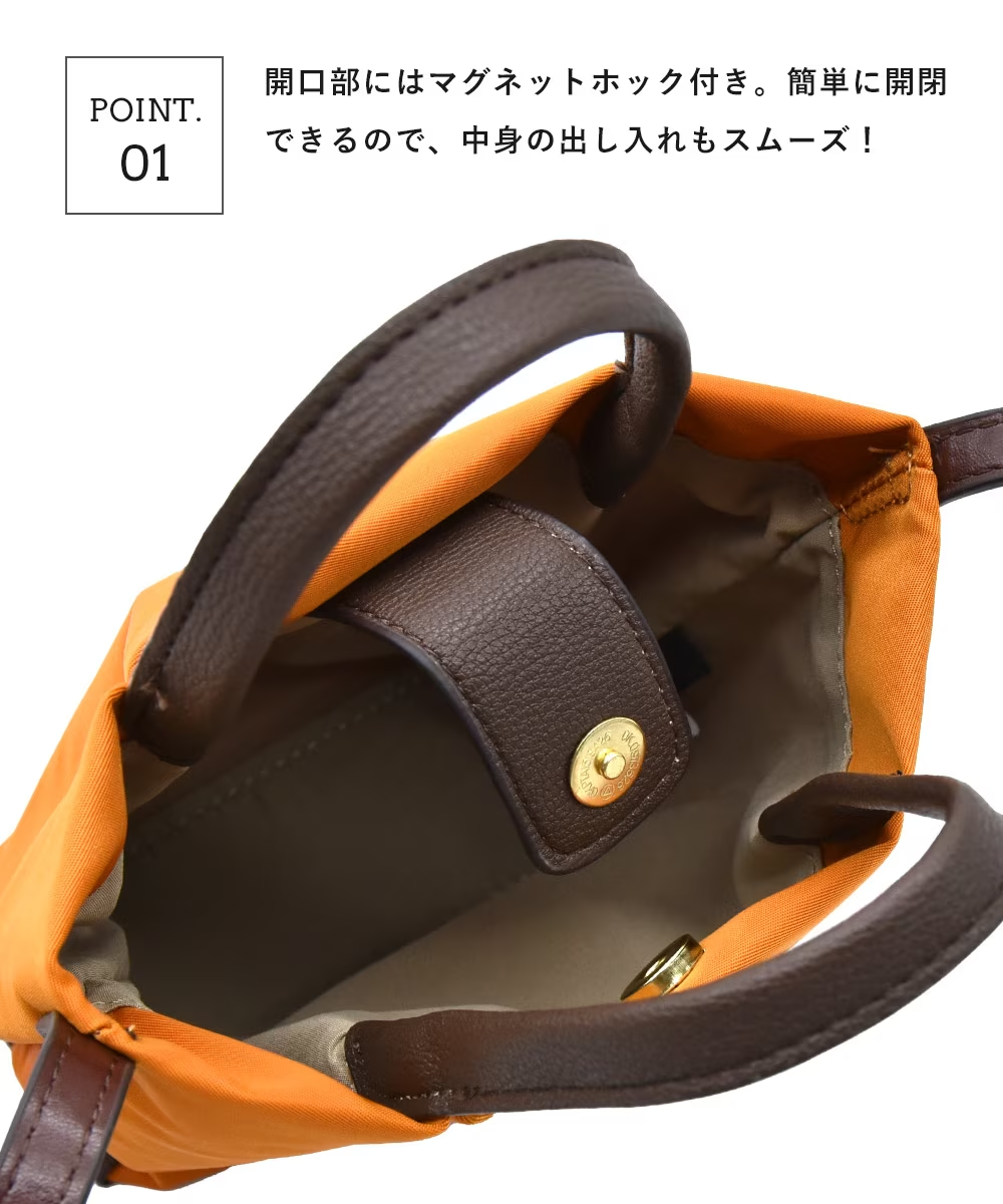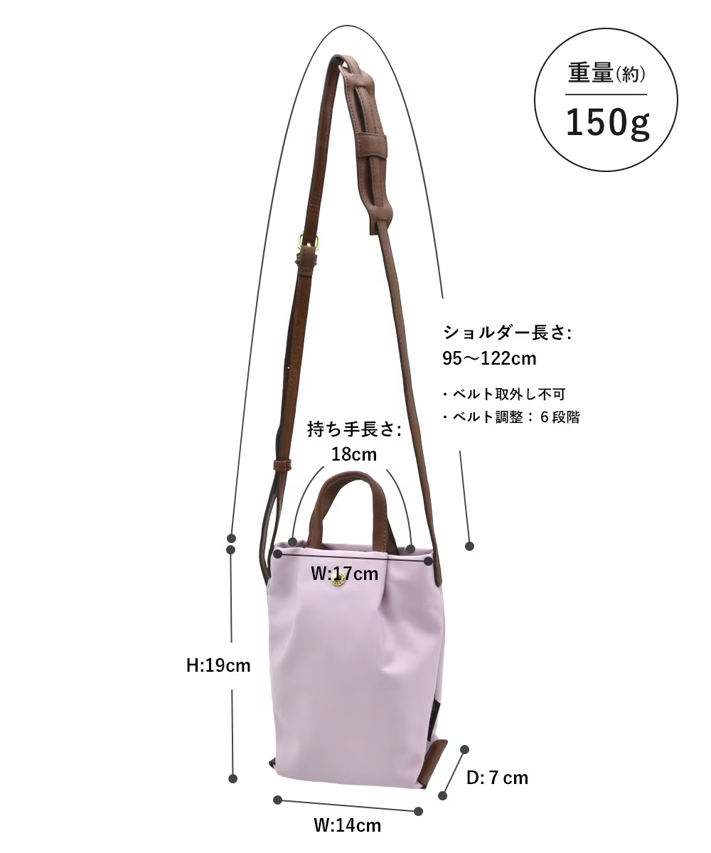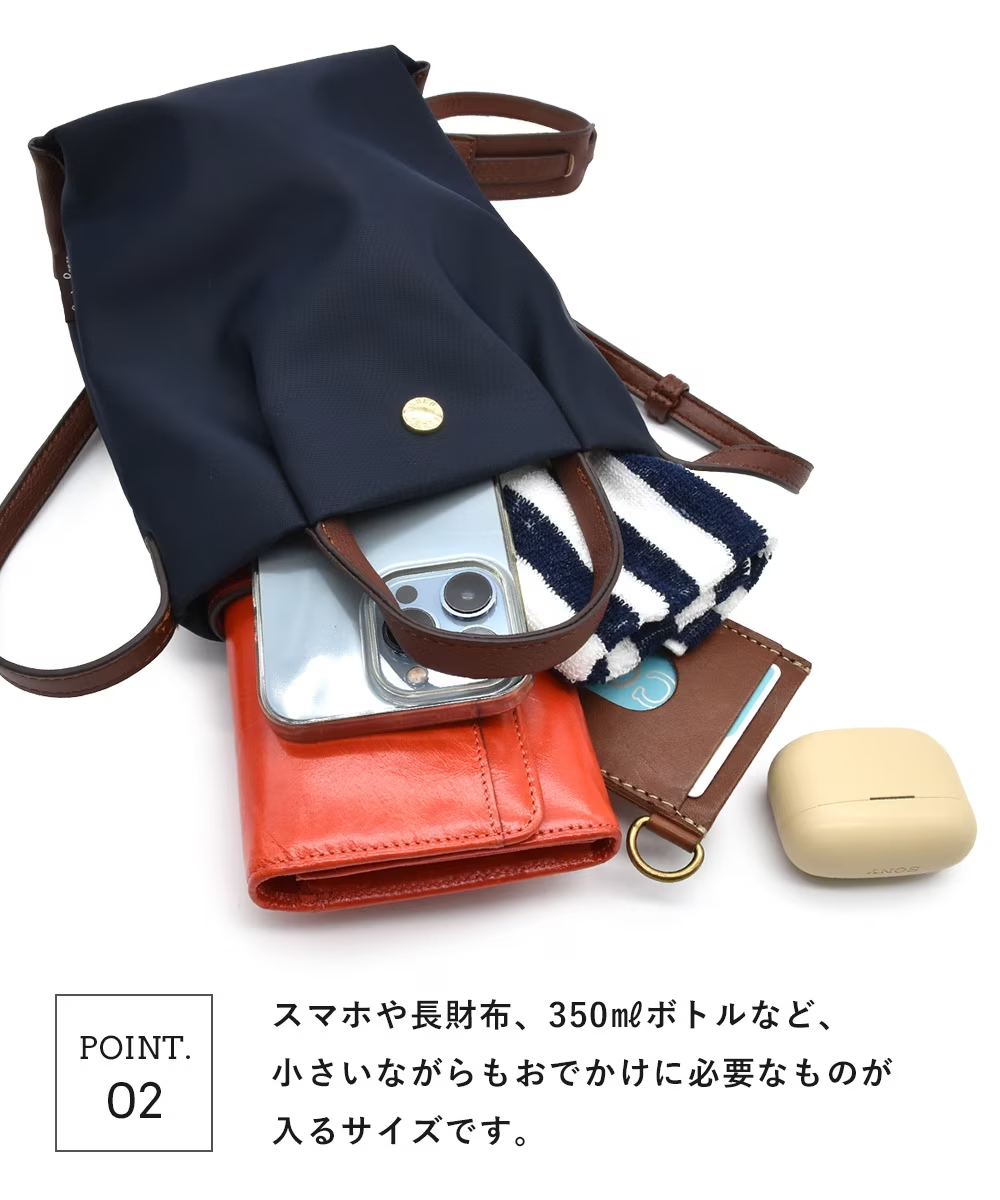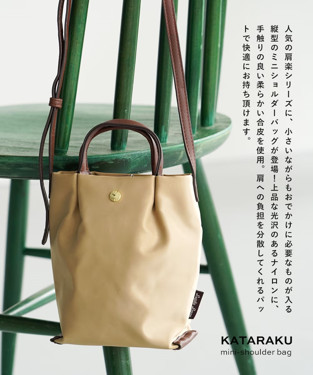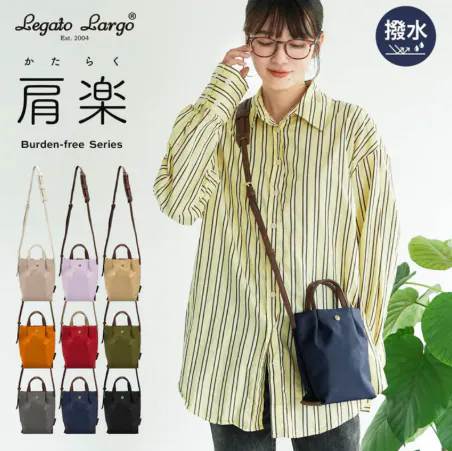 Legato Largo 旗下廣受歡迎的「Kataraku」(肩部舒適)系列推出一款可愛垂直迷你單肩包,採用防水布料。
