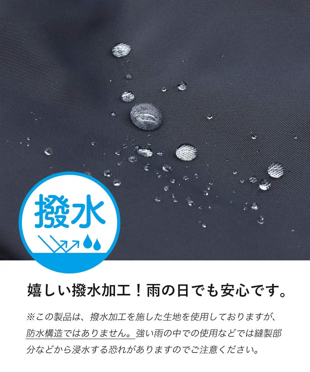 柔軟的合成皮革肩墊和提把能夠有效減輕肩部和手臂的負擔。防水尼龍布料讓您無需擔心突如其來的雨水或水濺(但並非完全防水)。