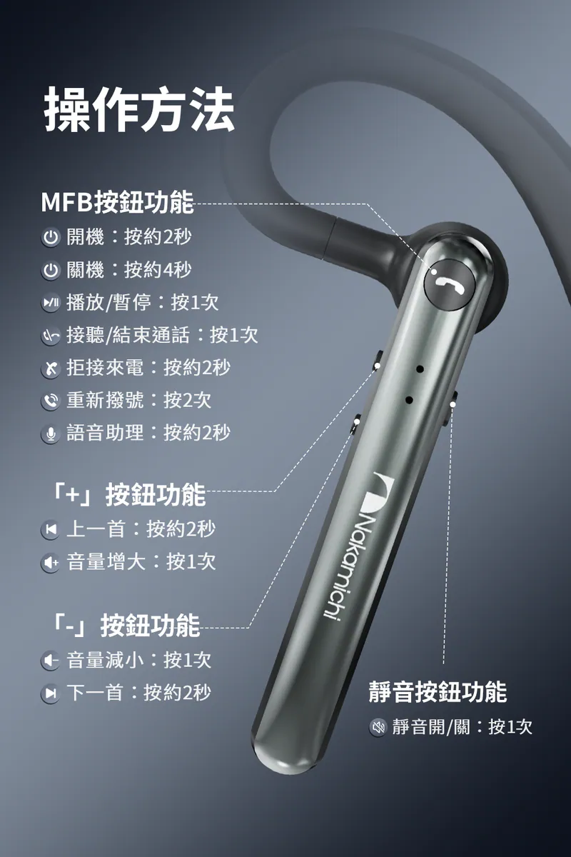 Nakamichi N2 單耳式掛耳藍牙耳機