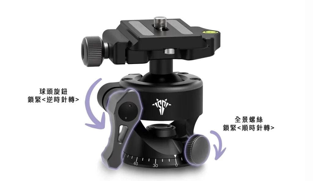 輕型球型雲台(金屬材質)約為 200g