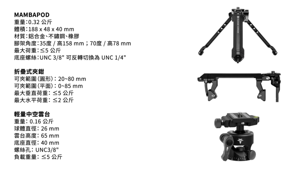 ✱ MAMBAPOD加上輕量中空雲台的重量為320+160=480g