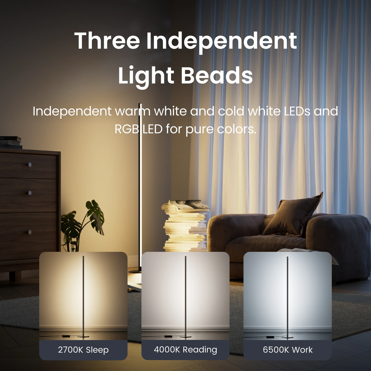 Matter 認證,相容於 Apple Home 透過 Wi-Fi 支援 Matter,無縫整合 Apple Home、Alexa、Google Home 等設備,無需 Hub 即可進行遠端控制。 可客製化 RGB+CCT 燈光 採用三合一 RGB+CW+WW 設計,亮度高達 1200 流明,色溫 2700K-6500K,亮度可調範圍超過 100%,是營造氣氛、閱讀或睡眠的理想選擇。 簡約設計,靈活擺放 節省空間的垂直機身和水平底座,可輕鬆放置在任何角落,完美搭配床、沙發、書桌或書架。時尚外觀,完美契合現代家居風格。 多種智慧控制選項 可透過語音、App、行程或遙控器進行控制。一鍵即可自訂場景、顏色和亮度,甚至支援睡前自動調整和兒童友善的免 App 控制。 相容 SwitchBot 生態系統 可與動作感應器或接觸感應器同步,觸發燈光場景。添加 LED 燈帶或聚光燈攝像頭,實現沉浸式家庭自動化。