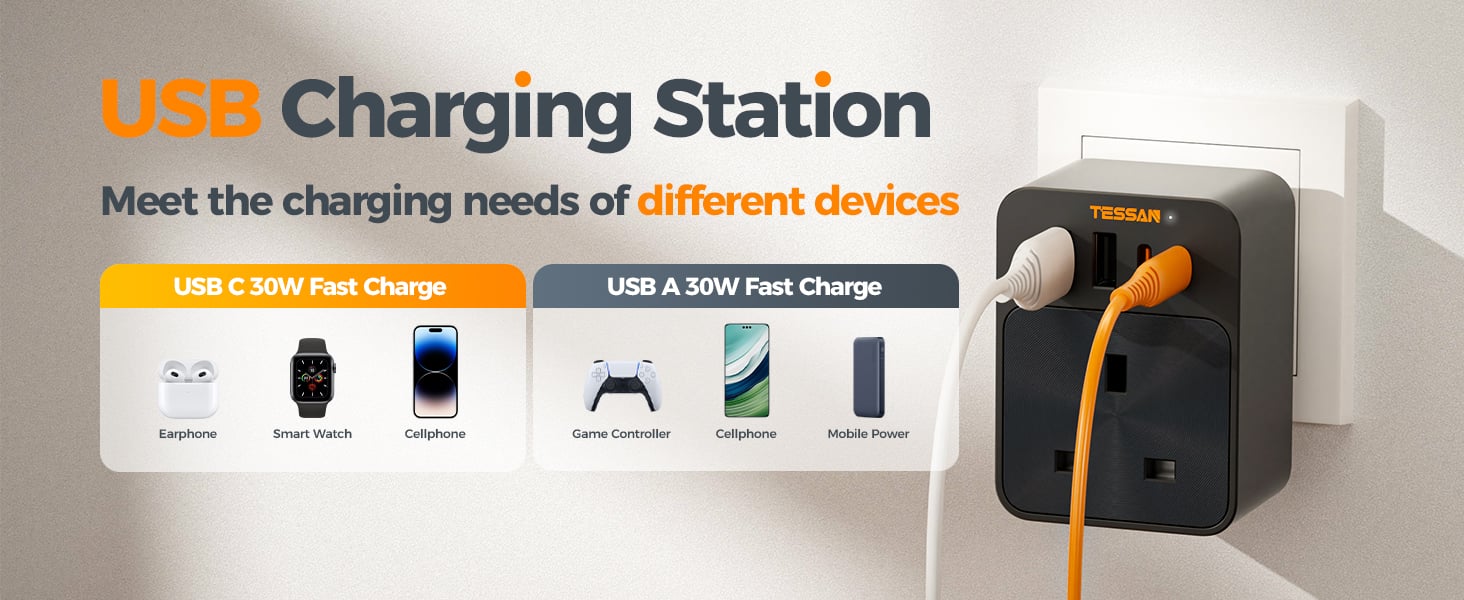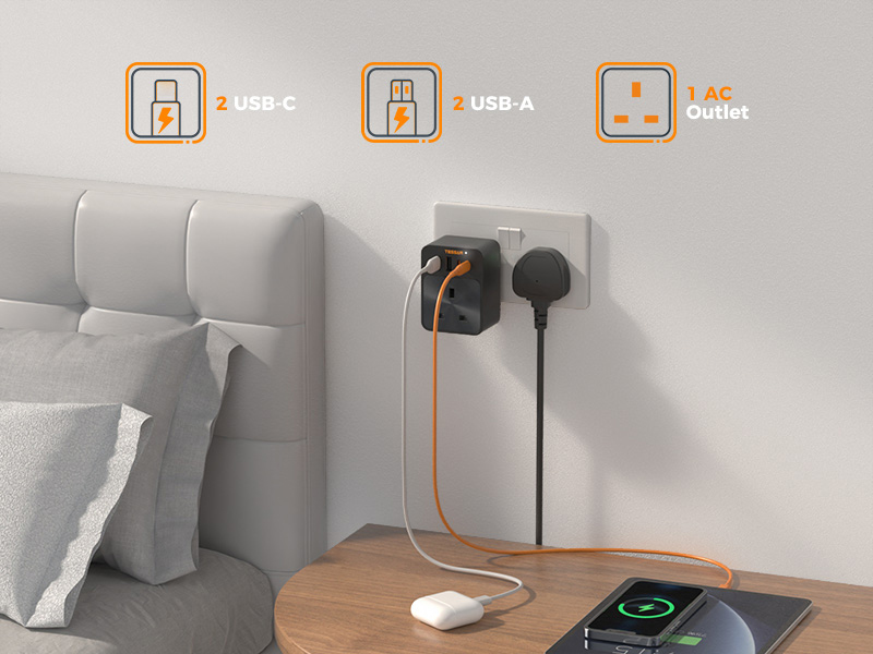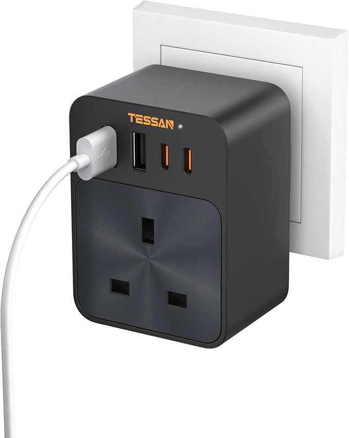 TESSAN 30W USB-C 插頭轉接器(英國),多功能電源轉接器,附 4 個 USB 端口 |擴充插座|USB 充電器|USB 插頭|Type C充電器|插牆 TESSAN 30W USB-C Adapter (UK), a multi-functional power adapter with 4 USB ports | expansion socket | USB charger | USB plug | Type-C charger | wall socket