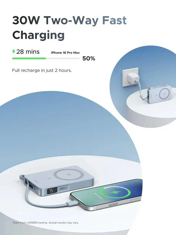這款UGREEN MagFlow Qi2 25W磁吸無線行動電源是無線充電技術的最新突破,為你的手機充電體驗帶來全新升級。以下是它的亮點特色: 全球首發 Qi2.2.1 認證:成為第一批取得Qi2 25W認證的品牌,充電更快、更穩、更安全 磁吸快充:採用全新Qi2技術,磁吸更穩定,自動對位,無需手動調整 兼容性強:完美支援iPhone 15/16全系列,邊用邊充毫無阻礙 大容量與高效能:10000mAh容量,最高30W USB-C輸出,能同時為多部裝置充電,如手機、AirPods、平板 內置USB-C電纜:方便攜帶,一拉即用 智慧顯示:LED提示電量狀況,一目了然 安全保障:通過CCC、RoHS、CE、日本PSE等多項安全認證,使用更安心 設計貼心:磁吸穩定,配合MagSafe手機殼也能完美貼合,不怕掉落 時尚小巧:掌上輕便,出街旅行的理想伴侶 原裝行貨:一年保養,品質有保障 想要一款兼具速度、安全與便捷的無線充電配件,UGREEN MagFlow Qi2 25W磁吸行動電源絕對是不二之選!