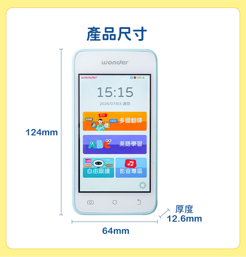 【聽、說、讀、寫,一機全面練好語言能力】 從課本背單字、聽歌、抄筆記——孩子每天都在「學英文」,卻始終無法真正「用英文」。手機 App 雖然方便,卻容易分心、打亂學習節奏。Wonder 全方位英語學霸學習機,結合 AI 跟讀評分、語速調整、拍課文即讀與語音翻譯,讓孩子從「背英文」轉向真正「會英文」,讓語言力 × 自信力 × 表達力全面升級。支援 48 種語言翻譯與 29 種拍照翻譯(支援粵語)。這不只是語言學習工具,更是孩子真正「學會英文」的起點。