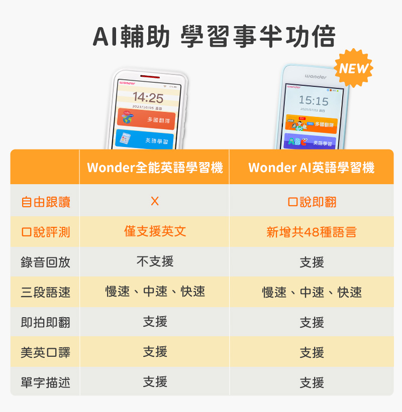 Wonder 全方位英語學霸學習機|可調語速 x 跟讀AI 評分