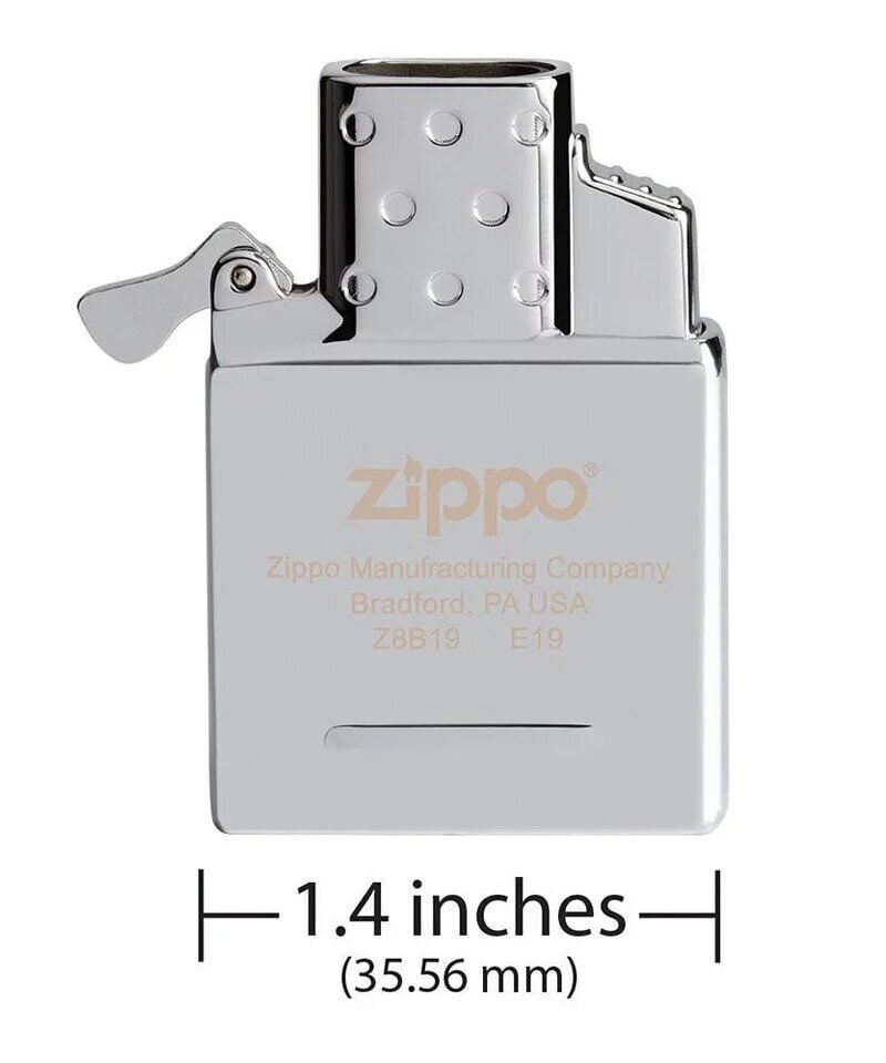 可調火焰大細, 火焰溫度高達 2,300°F/ 1,260°C 快速簡易點火設計, 按制點火 適合所有常規Zippo打火機 尺寸:高度53mm(±5%) 寬度35.56mm(±5%) 厚度11mm(±5%) 產地:中國製造 (美國監製) .原裝Zippo單火炬插件;按鈕式壓電點火 .可調藍燄高度;加熱到2,300 ° F / 1,260 ° C .可補充丁烷燃料;0.9克燃料容量 .適合所有常規的Zippo打火機,不適合裝於窄版或1935復刻系列(部分加厚版使用上會有上蓋無法密和的情況) .保有著名的Zippo“喀噠”聲響 .燃料:內容物成分為BUTANE GAS丁烷瓦斯的打火機瓦斯罐 ※請注意:單火焰/雙火焰噴射型內膽在原廠生產製造時,為確保安全故出氣量會設定較小,請使用時先將底部的+/-旋鈕往+的方向逆時針轉到底後再點燃(此情況並非商品瑕疵問題) ‧燃料:Zippo打火機燃料(另售) ・適合所有常規的ZIPPO打火機(纖細版及1935復刻版不適用) *圖片只供參考,顏色在光線下有偏差,產品以實物為準*